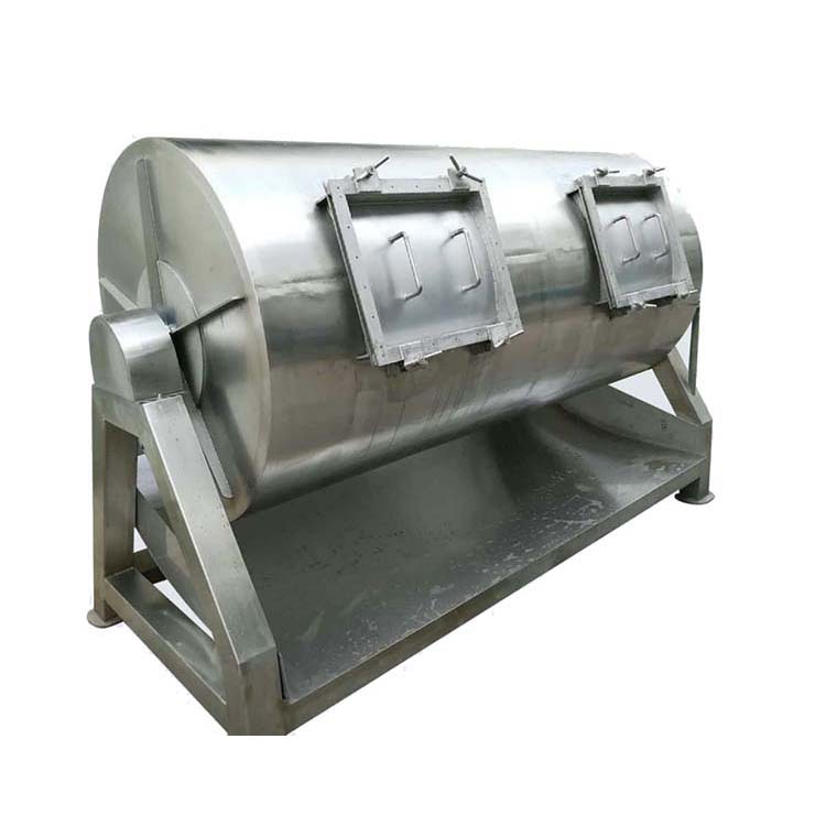 主要是將加工的魷魚絲、肉類制品等原料進(jìn)行腌制處理。在真空狀態(tài)下,物料通過螺旋槳葉的強(qiáng)制循環(huán)揉壓、摔打、靜置,加速鹽水分布和吸收,促進(jìn)肌纖維蛋白的溶解和提取,提高產(chǎn)品質(zhì)量,降低蒸煮損失,縮短腌制時間,改善肉品品質(zhì)。將產(chǎn)品放在真空狀態(tài)內(nèi),可提高調(diào)味品進(jìn)入肉品的速度,并大限度的保持肉內(nèi)的水分是在真空狀態(tài)下,通過筒體轉(zhuǎn)動進(jìn)行滾揉,使肉及添加劑溶為一體,以達(dá)到肉質(zhì)鮮嫩,出品率高的目的。
