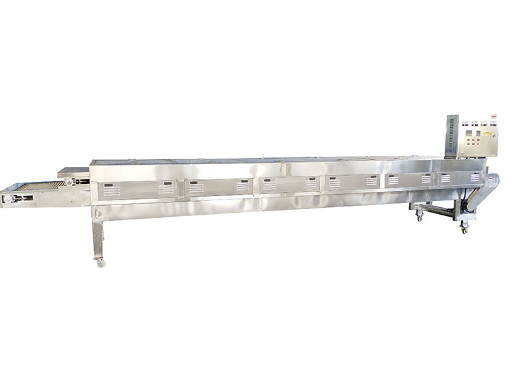 物料由傳動裝置拖動在烤箱內(nèi)移動,烤箱內(nèi)部熱量均勻分布,保持高品質(zhì)烘焙效果,部分尾氣由專門排濕風機排出,廢氣由調(diào)節(jié)閥控制,網(wǎng)帶運行速度可根據(jù)需要的溫度自由調(diào)節(jié),烘烤好的成品自動落入收料器中,操作簡單,省時省力,安全節(jié)能噪音小。